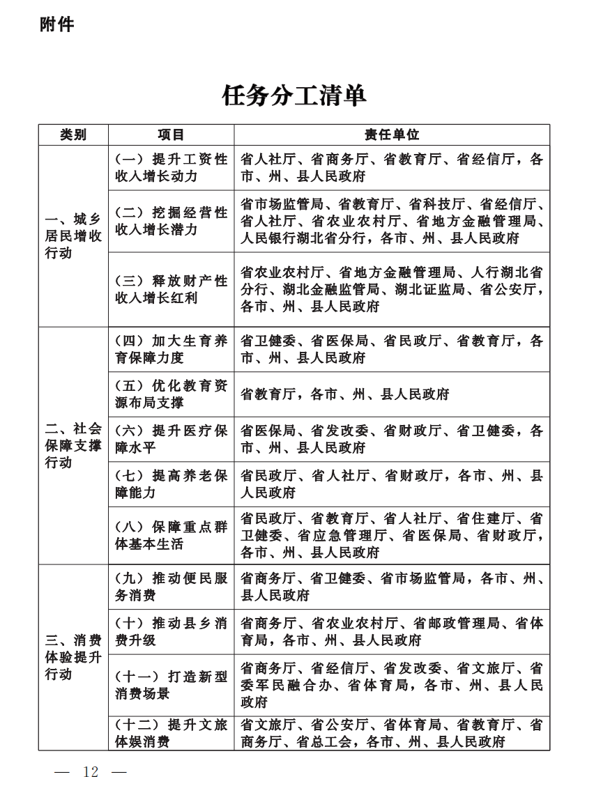 为贯彻落实中共中央办公厅、国务院办公厅《提振消费专项行动方案》精神,推动湖北发展实现能级跨越,强化消费对支点建设的战略支撑力,大力实施提振消费专项行动,特制定本方案。