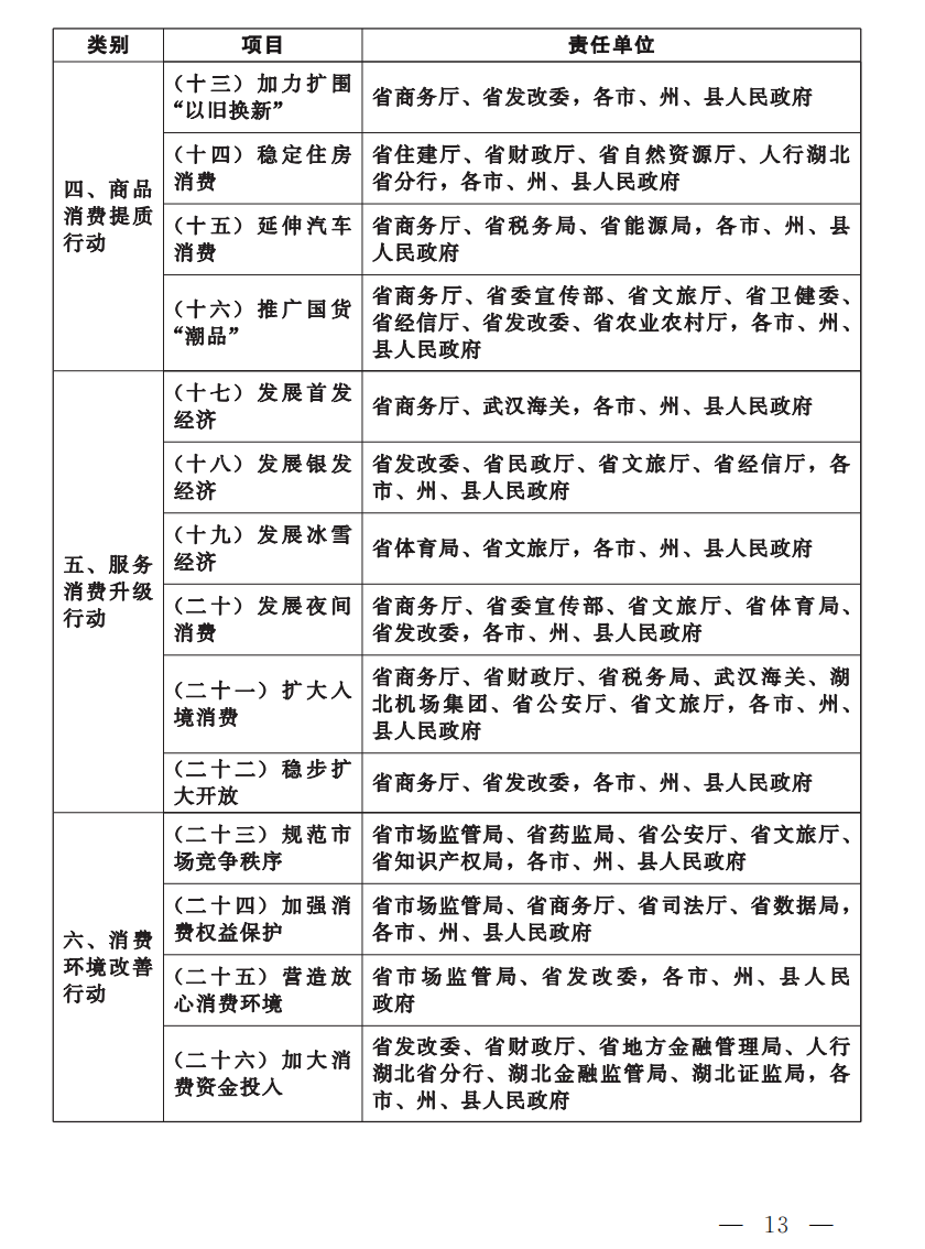 湖北省提振消费专项行动实施方案
